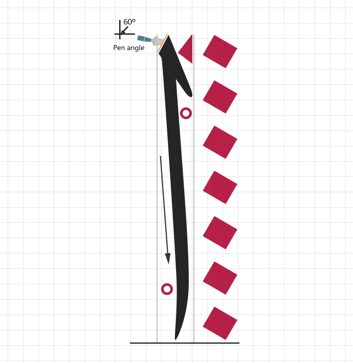 - Changing pen angle during the vertical stroke