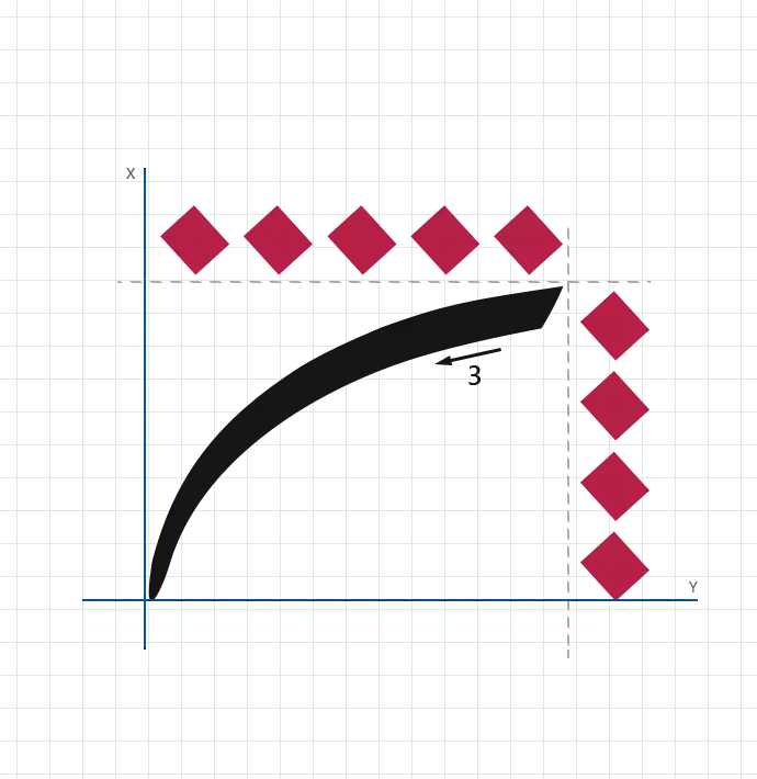 - direction: Diagonal downward curve