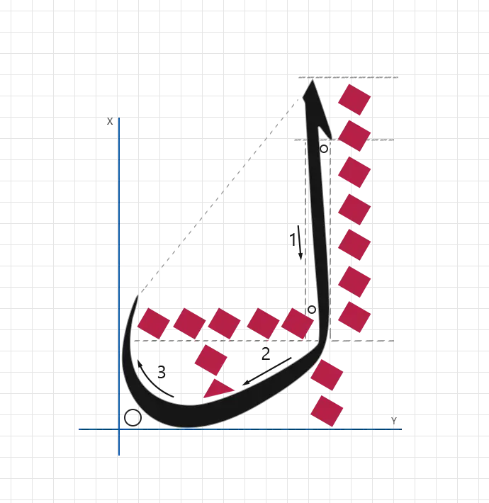 - description: Draw a short vertical stroke to refine the ending of the letter and complete the Laam with subtle elegance.