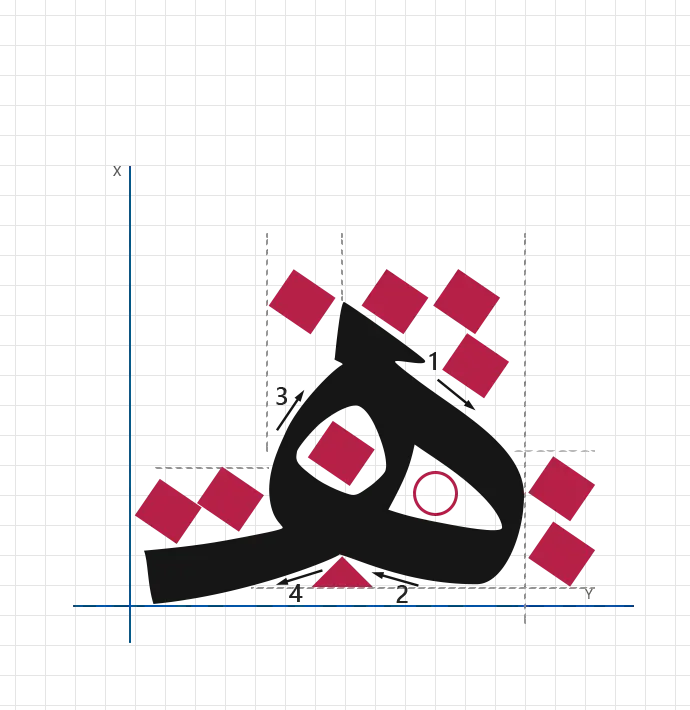 Haa is a flowing and rounded letter that represents harmony and softness in Arabic calligraphy. Its structure relies on smooth diagonal curves combined with a stable foundation and a refined head stroke. Practicing this letter helps students master curved motion, layered stroke building, and proportional balance, which are essential for elegant Thuluth writing.