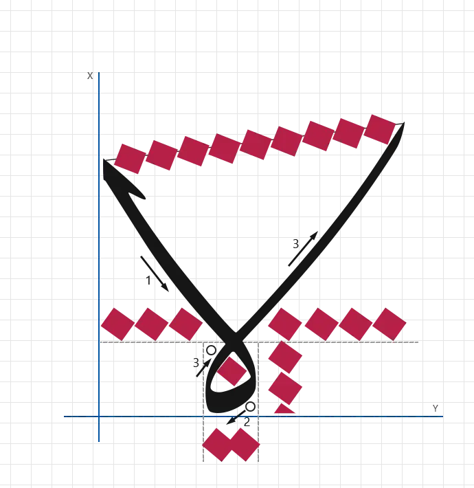 - direction: Downward short vertical